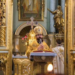 Після Літургії Владика Микола провів Чин благословення на катехитичне служіння у новому 2025/2026 церковному році для катехитів, головна місія яких — провадити катехизації та християнські науки, несучи євангельську вістку серед Божого люду. Згодом Архієрей провів обітницю катехита.