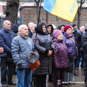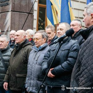 Продовжився захід виконанням патріотичних пісень та зверненням представників влади до громади, зібраної біля пам’ятника Герою України. Завершилося віче виконанням Державного Гімну України.