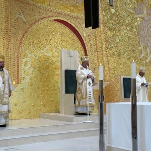 Перед Богослужінням Отця і Главу УГКЦ у Фатімі привітав Архієпископ Жозе, Єпископ Фатіми-Лейрії та голова Конференції католицьких єпископів Португалії.