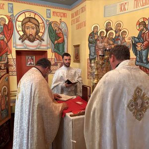 Божественна Літургія відбулася у каплиці святого апостола і євангелиста Луки, що розташована на п’ятому поверсі медичного центру. Очолив богослужіння екзорцист о. Володимир Лось, якому співслужили о. Руслан П’яста та капелан лікарні о. Юрій Валійон.