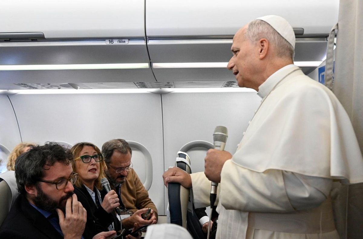 На зворотному рейсі з Лівану до Риму Папа Лев XIV спілкувався з журналістами, говорячи про роль Святого Престолу, який працює «за лаштунками» мирних переговорів, щоб сторони склали зброю. Щодо України, він підкреслює залучення Європи та важливість можливої ролі Італії. Він відповів на запитання про те, як він відреагував на обрання на Конклаві, та про свою духовність: віддати життя Богу і дозволити Йому бути керівником.