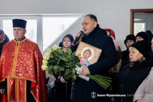 Відтак до громади звернувся міський голова Івано-Франківська Руслан Марцінків, який підкреслив значення храму для духовного життя мешканців громади, подякував усім, хто долучився до його відновлення, та наголосив на важливості збереження пам’яті про полеглих Захисників України.