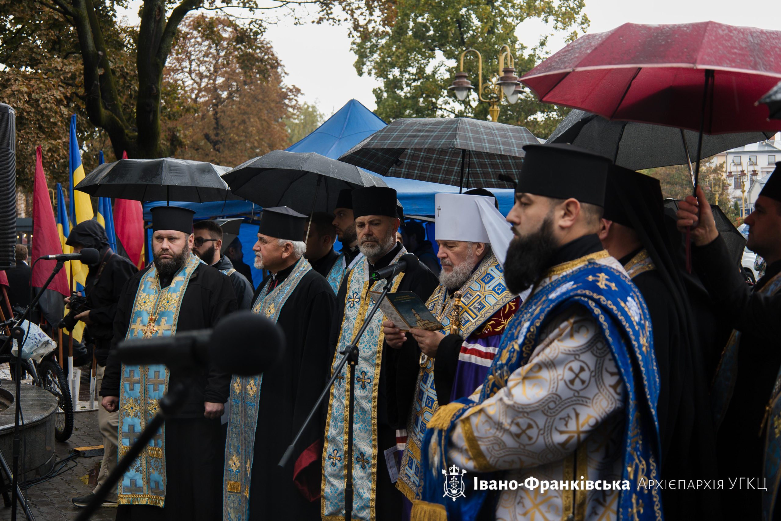 Розпочалося урочисте дійство зі спільного виконання Державного Гімну України. Відтак представники духовенства відслужили молебень до Пресвятої Богородиці за перемогу України та мир у нашій державі, а також панахиду за всіх полеглих Воїнів. У молитві взяли участь священнослужителі Івано-Франківської Архієпархії УГКЦ та душпастирі ПЦУ.