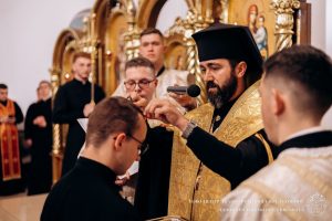 Згодом Владика Микола уділив благословення підрясників семінаристам, які навчаються на другому курсі. Зачитавши молитви, Єпископ освятив освяченою водою підрясники та поблагословив нею братів-семінаристів.