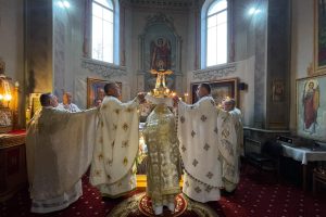 Відтак Владика очолив Архієрейську Божественну Літургію у співслужінні пароха та численно зібраних священнослужителів Івано-Франківської Архієпархії.