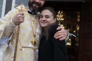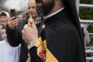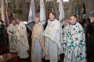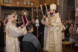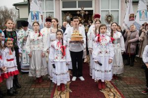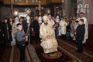 Святкове дійство розпочалося з урочистої зустрічі Єпископа на церковному подвір’ї. Його радо вітали діти, молодь і парафіяльна спільнота на чолі з парохом о. Сергієм Дирівим.